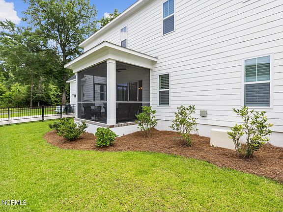 An amazing family home with very large 2nd floor Family Room plus 3 bedrooms with large bonus room, which can also be considered a 4th bedroom. Welcome to the desirable gated community of River Bluffs, situated along the Cape Fear River. This home, built by Herrington Classic Homes, was a Bronze Award Winner in the 2020 Parade of Homes - highlighting the expansive 2nd floor open concept Family Room. Boasting 4 bedroom, 3 1/2 baths, situated on a corner lot, with side-entry garage and showcasing MANY upgrades including full house Wood Plantation Shutters, renovated primary bathroom with Barn Door and Double Mirrored Medicine Cabinets over sinks, Screened-in Porch, Epoxy Flooring in Garage, new Aluminum Fence, upgraded Light Fixtures and additional / upgraded Ceiling Fans. higher end Samsung Stainless Steel Appliances, including gas stove/oven. This home provides plenty of storage space with pull-down ladder to attic plus 2 walk-in attics along either side of 4th bedroom.
