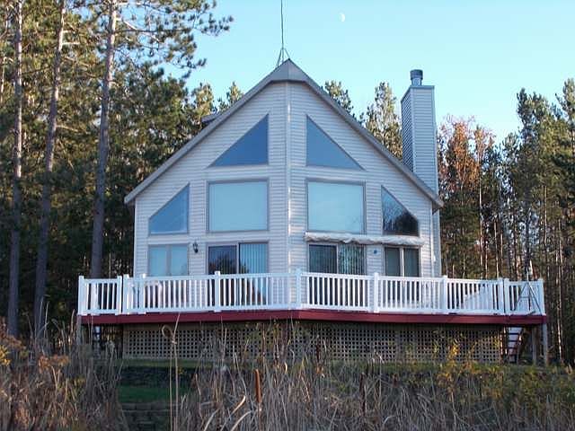 This home has a stunning waterfront view from most of the rooms! It has been lovingly finished with quality materials and is ready for year round living or vacationing on all sports Big Norway Lake, with prime fishing. Beach and launch access are next door. The maintainance free deck is brand new! The rooms are open, spacious and airy with room for everyone. Have the whole family at the breakfast bar, seating 6-8, or for a great place for conversation with company,while preparing dinner. Lots of hand-made built in shelving for your books and music or collectibles. Master bedroom has balcony overlooking the living room. Two extra rooms upstairs, one 14'x32' and one 14'x20, for multi-purpose rooms. Home has Pergo wood laminate and tile, with Anderson windows. A truly beautiful home! Also included are three lots across the road from the house and lakefront.