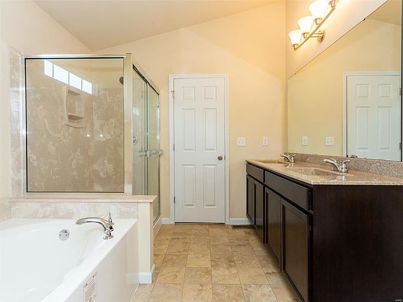 Back on the market at no fault to the seller. Move in ready ranch, only 5 years old. 3 bedroom, 2 full bath, with split floor plan. Formal dining room, open eat-in kitchen with island and pantry. Living room features a gas fireplace. The kitchen, living room, and master bedroom have vaulted ceilings. Master bed room has an en suite bath featuring a garden tub, separate shower, double vanity, and a large walk-in closet. Main floor also has 2 additional bedrooms, a full bath, and laundry room. The lower level has a rough in and egress window. The backyard is fenced with a stamped patio. The neighborhood has a pool, playground, and a stocked lake.