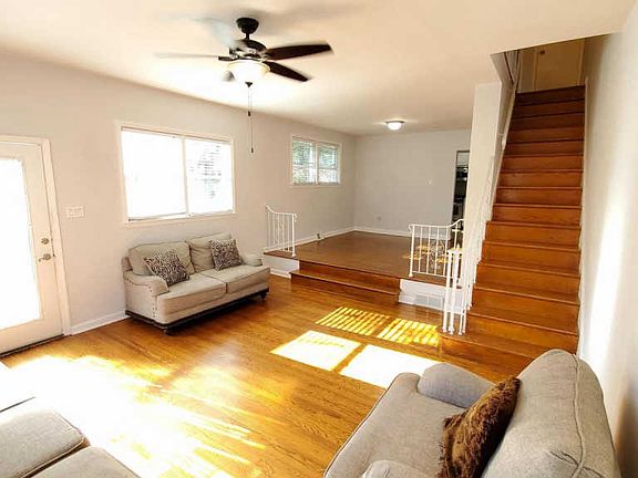 We invite you to view this spacious twin home with large yard to include a new deck and a 1 car Garage. As you enter you will notice plenty of natural light shining upon the hardwood floors which run through the main level. You will appreciate the spacious sunk in living room leading to a large dining room and eat in kitchen. The 3 bed rooms are a very good size leading to a beautiful bath room that includes a jucuzzi tub. This home is also equipped with central heat and air and a partial finished basement.