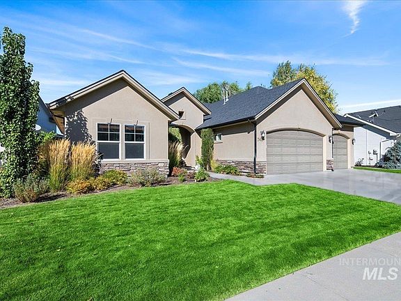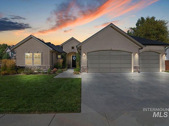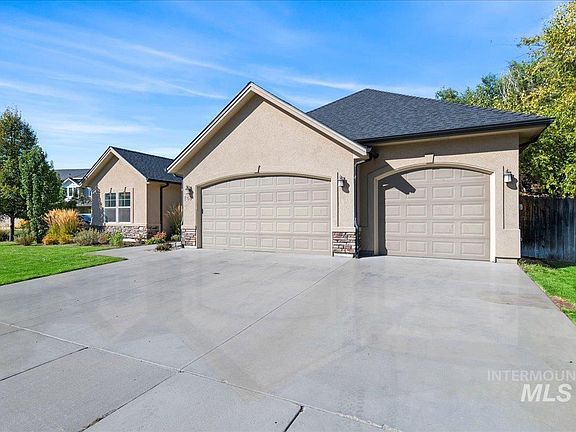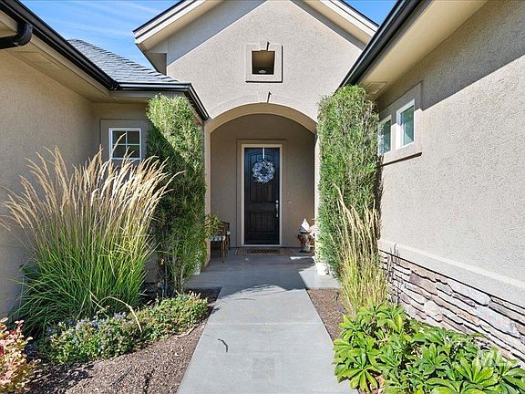 Open House 10/5 & 10/06 10am-12pm!!Get ready for your one level dream home.Low maintenance landscaping with incredible outdoor features makes this home a must see for all seasons!Out back is a Bose surround system, as well as built in fireplace and remote tv lift cabinet to catch all the games or check out a movie while cooking on your outdoor covered kitchen- fit with BBQ and mini-fridge! On the other side of the yard- can I get a HOT TUB?! Perfect for soaking up those gorgeous Idaho skies. Off the primary bedroom is your own outdoor covered oasis, a perfect place for morning coffee or a calm yoga retreat! Side dog run with turf that could easily be turned into a putting green! Don't forget about the inside- tall ceilings, luxury vinyl plank flooring, brand new carpet and paint throughout. Split floorpan layout and incredible open concept kitchen with granite countertops, new built in microwave and gas stove. The 3 car garage features an epoxy floor. NEW HVAC and AC!