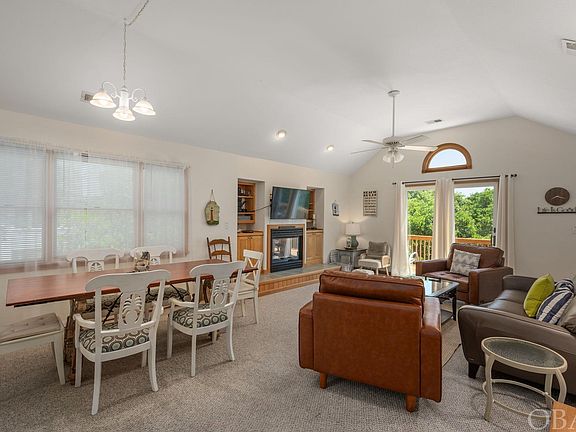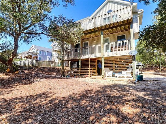 Welcome to your new beach house located at 748 Fish Crow Ct, nestled in the serene setting of Ocean Sands, Corolla. This well-maintained 4-bedroom, 3.5-bathroom house offers a comfortable and spacious living environment with a host of attractive features. With approximately 1,893 square feet, this residence is designed with both functionality and everything you need for a relaxing beach rental. The interior boasts two primary bedroom suites, providing ample space and privacy. High, vaulted ceilings create an open, airy feel throughout the home, complemented by the warmth of a gas fireplace in the living area. The kitchen is open to the dining and living room and is equipped with a garbage disposal and eat-in peninsula. Outdoors, the property features a sun deck, a covered porch, an outdoor shower, and a patio, ideal for relaxation or entertaining guests. These spaces are enhanced by the natural beauty of shady oak trees that dot the private lot, offering both charm and seclusion. Additional amenities include a dry-entryway, ensuring ease and comfort during inclement weather, and a basketball goal for recreation. Whether enjoying the tranquility of the covered porch or engaging in active play, this home caters to a variety of lifestyles. Located in a peaceful neighborhood, this property combines the allure of natural surroundings with the comforts of modern living. Don't miss the opportunity to check it out today!