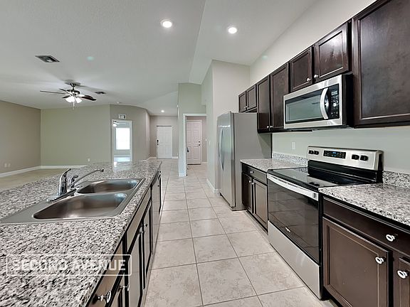 Welcome home to this 4-bedroom, 2-bathroom home well-situated in beautiful SW Palm Bay! Enter into an open concept living and dining space with soaring vaulted ceilings. The chef-inspired kitchen boasts granite countertops, stainless steel appliances, a large center island, and a convenient pantry. The primary suite features an oversized closet and en-suite bathroom, while the generously sized secondary bedrooms are bright with great closet space. Tile floors throughout provide style and easy maintenance. Don't miss this opportunity - Call today and discover your perfect Florida paradise! LOCATION: Easy access to I95 offering the convenience of being in close proximity to a vibrant array of shopping and dining options, beautiful beaches, and abundant outdoor activities SCHOOL DISTRICT: Brevard Public Schools OUTDOOR SPACE: Rear covered porch ideal for enjoying the Florida sunshine Second Avenue is proud to offer the Hometown Hero Leasing Discount Program to honor and support local heroes, including police officers, firefighters, emergency medical personnel, educators, and government employees. Eligible participants who are fully approved for a lease will enjoy a reduced security deposit on their Second Avenue home. This offer cannot be combined with other promotions or discounts unless otherwise specified. By choosing a professionally managed rental home by Second Avenue, you'll enjoy personalized services such as our all-in-one resident portal, dedicated call center, and professional maintenance program. All Second Avenue homes are pet-friendly (pet fees and breed restrictions apply) and we offer convenient self-guided showings 7 days a week. We also proudly offer military discounts for active-duty personnel. Additional fees may include, yet not limited to septic/sewer, or renters insurance. Approved applicants must pay a hold fee and begin the lease agreement within 7 to 12 days of approval. Don't delay, as our homes lease quickly! Please be aware of scams. Second Avenue does not advertise on Craigslist, Facebook Marketplace, or any other classified advertising websites. We will never ask you to wire funds. All photos shown are for illustrative purposes. Certain finishes, flooring, and room orientation may vary.