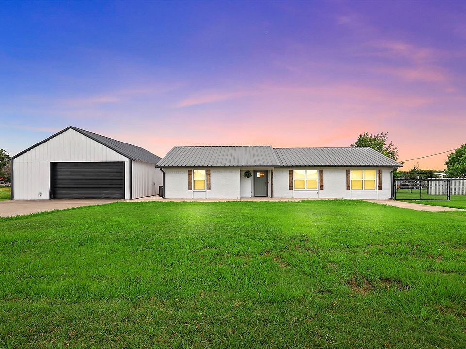 This stunning 3 bed 2 bath home sits on 1.6 acres in the highly coveted Godley ISD and has been tastefully designed in all things beautiful and inviting! Located outside the city limits, it has no restrictions, and you are welcome to bring your horses, goats, and chickens! Those who love to entertain will fall in love with the open and bright living spaces, complete with wet bar! The kitchen is a chefs dream with oversized granite topped island, stainless steel appliances and two-toned cabinetry. Bedroom 1 features an en suite bath which has been beautifully tiled and offers plenty of storage while the primary bedroom features a walk in closet with sliding barn door, double sinks, and luxurious walk in shower! You’ll love sipping your coffee on the covered patio that over looks the sprawling back yard. Acreage is fenced and equipped with stable, heated and cooled dog house, and a 30X40 shop with electricity that doubles as an extra oversized garage. Welcome home!