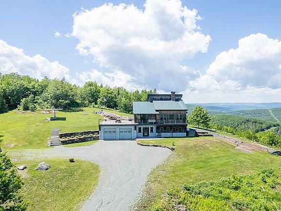 Mountains, water and sky. This home offers views with a capital "V". Watch the weather blow over Willoughby gap, or spot the radar station in Victory. Burke Mountain is visible, as is Mt. Washington, Lafayette, and the trails on Cannon Mountain, and those are just the mountains most know by name. Perched atop Hurlbut Hill, this home is sited to catch the morning sun over the White Mountains and the many rainbows that dance over the Connecticut River Basin in the early summer months. Surrounded by exposed ledge and curated stone walls, this home fits nicely in the landscape. Industrial farmhouse is the concept — this seller/builder has worked that aesthetic well; corrugated exterior accents the siding and carries through to the interior, note the corrugated ceiling in the kitchen and the stairway risers. Vintage barn trim, reclaimed brickwork, stain glass accents on the stair railings, burnished copper trim in the custom bath, attention to detail is evident everywhere. The seller is willing to install Wood flooring on the main floor in the living room prior to closing at asking price. This property is powered with solar, it has a lithium battery and back up generator. Waterford is at the crossroads of both interstates 93 and 91, it is three hours to Boston or Montreal and minutes to Burke Mountain, Kingdom Trails or Cannon Mountain to the south.3-D Virtual tour with the listing, call to schedule a private viewing.