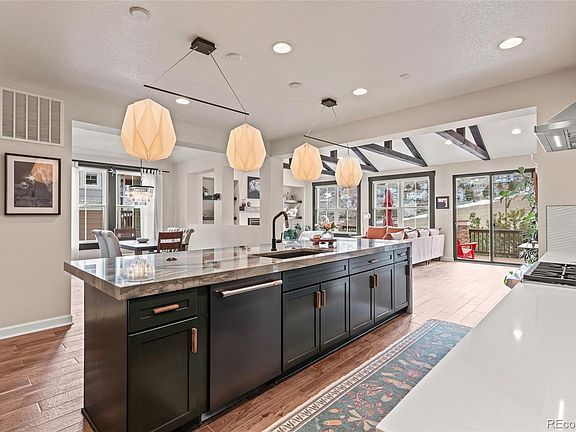 Indulge in breathtaking mountain vistas from this captivating RANCH-style home. A jaw-dropping gourmet kitchen awaits, boasting a colossal rare slab island, Wolf range, top-tier appliances, upgraded cabinetry, and luxe fixtures. Flow effortlessly into the expansive formal dining area, adorned with an enchanting coved ceiling. Chill in the sun-soaked family room, accentuated by a striking vaulted wood beam ceiling and a new oversized gas fireplace enveloped in imported Turkish Zellige tile and a copper-clad mantle.