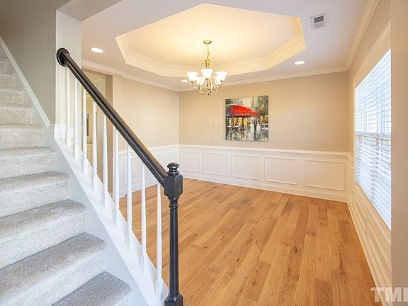 NEW, NEW, NEW - Beautiful updated 4 bed/4bath home in popular Keystone Crossing! New wide plank wood floors on main level - new carpet and paint! Updated kitchen w new white cabinets, granite countertops, tile backsplash and ss appliances all open to family room w gas fireplace. 1st floor guest suite w full bath. Spacious master w trey ceilings, 2 WIC, garden tub and sep. shower. Finished 3rd floor flex space w full bath. Close to RTP, RDU, Durham and Cary. Hurry, this one will go fast!