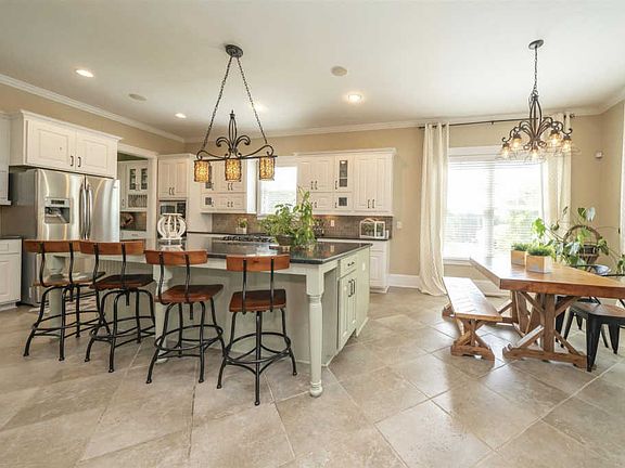 - RoomKitchenFeatures: Granite Counters, Kitchen Island, Pantry, Recessed Lighting, Eat-in Kitchen, Nook, Floors-Tile, Backsplash-Tiled, Cabinets-Painted