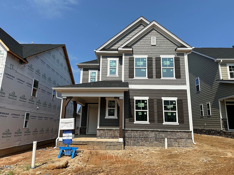 Home of the Week! Tinsley home design featuring 1st floor Owner's Suite! Knightdale's new Stoneriver community featuring clubhouse, saltwater pool, planned yoga studio and fitness room. 1st floor owner's suite with 2 walk-in closets and owner's bath. 42'' kitchen cabinets, Quartz kitchen countertops. Gourmet kitchen appliances includes gas cooktop, chimney hood, and wall oven and wall microwave EVP floors. Screen Porch and covered front porch included. Bonus Room and Storage closet upstairs. Tankless gas water heater provides on demand comfort. Fiber cement siding. Playground and walking trail among community features. Convenient to nearby parks, North Hills/Midtown 12 minutes Fiber internet provided in HOA dues.