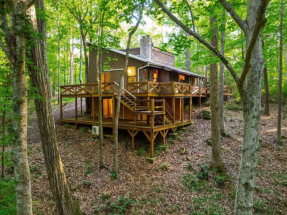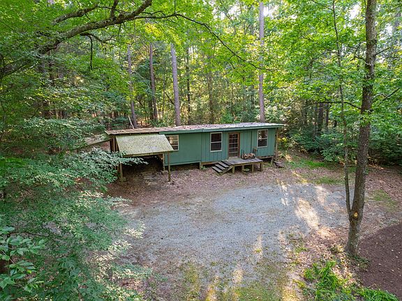 At the end of an old Chatham County gravel road sits a property truly unlike any other. Removed from the noise and congestion of town, the only sounds are bird songs and the melody of leaves. Perched high above a boulder-strewn creek on a hillside dotted with rhododendron, this modernist cabin brings a little Asheville home to the Triangle. The 3-sided wraparound deck provides an unparalleled vantage point to watch the change of seasons, from the deep quiet of winter to spring's green renewal. No matter the weather, elements of passive solar design, a full-size wood stove, and two modern ductless heat pumps ensure sustained comfort. Enjoy the singular charm of the handcrafted kitchen and the luxuries of the updated bathroom. With extras including an upstairs loft, 300-square foot basement/flex area below, a generous detached shed/studio and a lovingly-tended garden, you will find plenty of extra space to craft, exercise, brew, can, build, grow, paint, or anything else that so inspires. With ten private acres, the possibilities are unrivaled - and yet, the property sits only 15 minutes from Chapel Hill & Pittsboro, and just over 30 minutes from Cary via Highway 64. Though some repairs are needed to realize its full potential, this property is without question the only one of its kind, and offers a once-in-a-lifetime opportunity to put down your own set of roots.