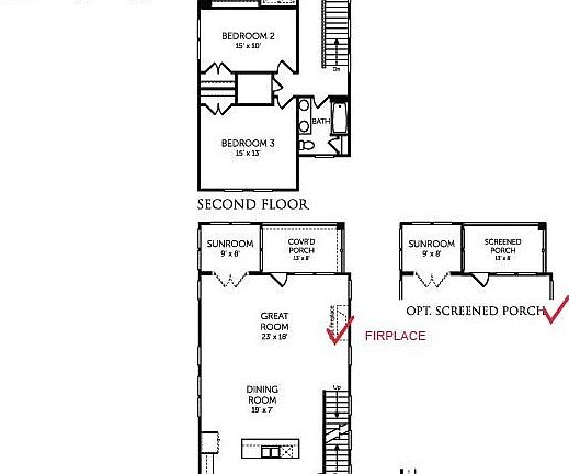 - Room types: Great Room, Living/Dining Combo, Sun Room, Great, Laundry, Pantry, Sun