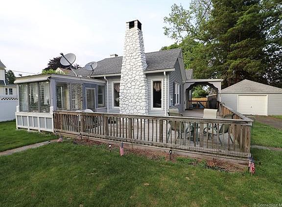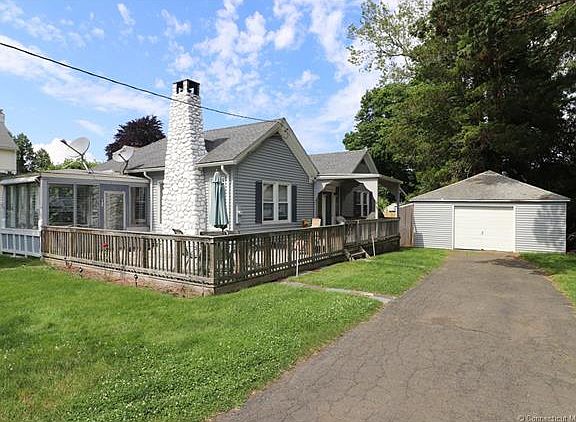Ranch home nestled on .24 acres in New London and only 1.3 miles to Ocean Beach Park and .8 miles to Yale New Haven/L&M hospital. This Cozy home offers the comforts of one level living, 2 generous sized bedrooms each with access to a full bath. Spacious 20 x 12 eat-in kitchen , Dining room with built in shelving and hardwood floors, 12 x 15 family room with wood stove and hardwood floors. Enclosed Sun Porch leading to a over sized sun deck with detached over sized one car garage.Well maintained.