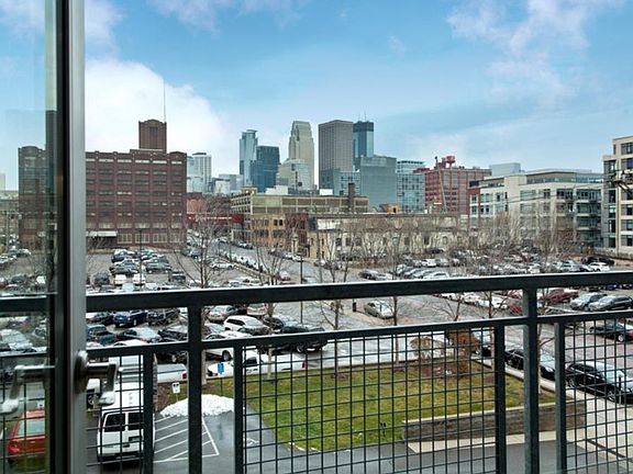 North Loop Herschel Lofts condo w incredible views of the downtown skyline from wall of windows & private balcony. Industrial feel w modern attention to design throughout. Inviting hardwood floors, built-ins, exposed concrete walls & pillars. Recently updated kitchen.. Steps from restaurants, entertainment, shopping, easy access to hwys, walking distance to Target Field & light rail. 2 car garage. Association maintained exercise room. Large green space at entry to building.