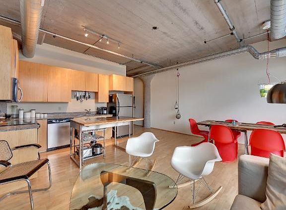 The views don't get better in the North Loop for the price!Historic warehouse conversion in the North Loop.Own for less than you can rent in one of MPLS premier neighborhoods.Exposed concrete pillars,tall ceilings,walls of glass & balcony facing downtown.