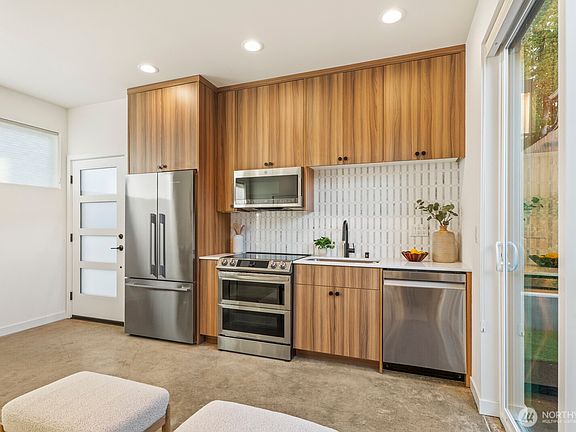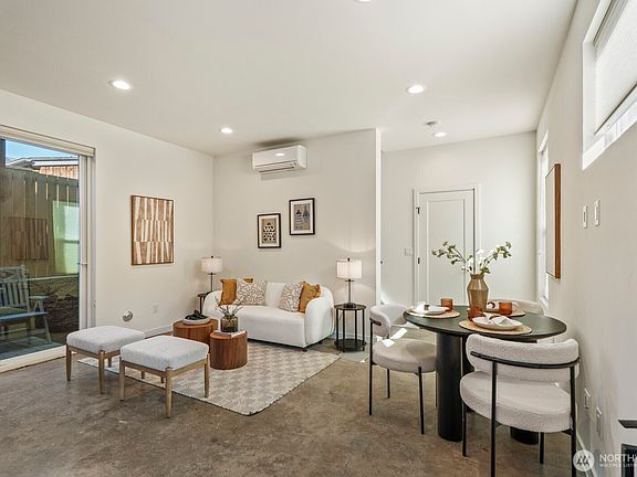 This 2022 modern Townhome in the heart of the Greenwood neighborhood is vacant and ready for you to see. This thoughtful design features tall ceilings, natural light, comfort and privacy. Each floor has its own temp controlled mini splits and bathrooms. The main floor features your living space & kitchen with access to the backyard. The 2 bedrooms are featured on floors 2 and 3, each with gorgeous amenities. The home shares a privately gated courtyard with the 2 other homes. Sitting in the heart of Greenwood you have access to everything you need, close distance to Green Lake, Downtown, freeways & more. You want to live in the city but have a quiet place to retreat, look no further because you’ve found the perfect location to call yours.