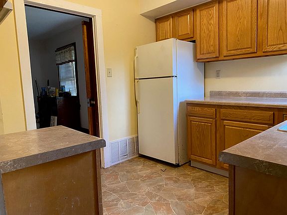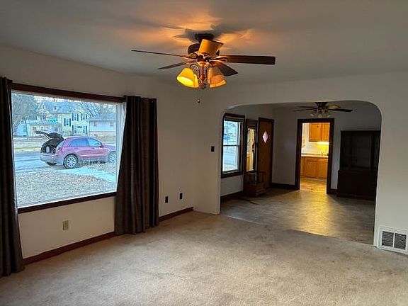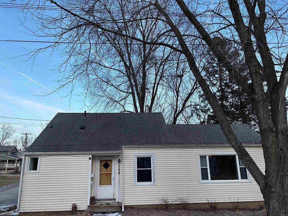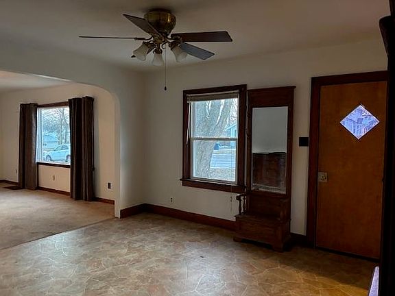 Large bathroom is handicap accessible zero entry to shower, upstairs large bedroom with cedar closet and many built-ins, 2 small bedrooms on first floor, large dining room and front room. Kitchen will need appliances. Lower level has walk-out to patio. Extra large corner lot. Newer windows. Freshly painted. Low taxes.