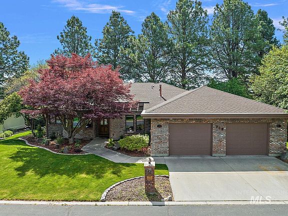 Excellent golf course location on Eagle Hills golf course. Back yard faces 12 fairway with unobstructed views of the mountains, gorgeous water feature and fairway. The vaulted ceilings & sky lights fill this home with natural light. The extra large master suite has unobstructed views of the beautiful back nine. This lovely home features beautiful hickory flooring and carpet. Complete with the 9x17 sunroom/office. Full brick exterior & high-end windows/doors make for easy living. Extra large garage w work shop area. Heated floor in kitchen dining room make it even more cozy! BRAND NEW ROOF June 14th! 240 v Car charging port New recirculating hot water on demand. LED lighting throughout. Brand New cooling unit May 2024