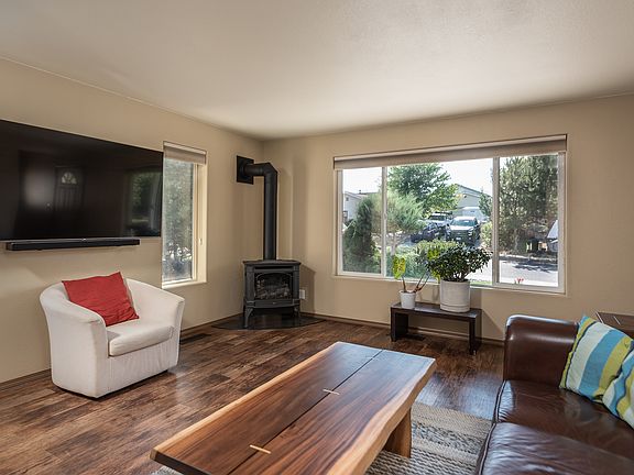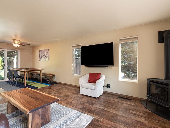 Beautiful and modern spacious 4 bed/2.5 bath home (unfurnished). Private fenced back grass yard with a covered patio, raised garden beds, garden shed/solarium, outdoor shower. Shaded front porch with large front deck, storage shed, two car garage and large driveway. Two level interior with indoor gas fireplace, fridge, range, washer and dryer. New central AC/Heat system with high-level filtration. High efficiency gas stove fireplace in the living room. Renter responsible for water, gas, electric. Last month rent due at signing. 6 month lease with month to month option thereafter or month to month. No smoking, small dogs okay (less than 25 lbs). FYI I'll be out of range 8/5/25 - 8/15/25 and unable to respond. I'll do my best to respond promptly when returning on 8/16/25!