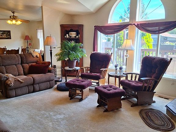 Beautifully landscaped property on a quiet street in west Sheridan. Well maintained home shows pride of ownership. Spacious covered decks in front and back. Double detached garage with built in work benches and storage shelving. Apple tree and established blueberry and asparagus plants. 1344 sq ft garden edged with raised garden beds. RV parking pad. Heats with either wood stove or gas. Come and see this delightful property!