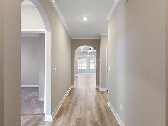 Sitting on a acre lot, this ranch style home features three bedrooms and two bathrooms. The home has a welcoming concept with a large great room room with coffered ceiling, a sunroom just off the great room and a open kitchen with a spacious kitchen island, stainless steel appliances and a nice eat-in area. The primary suite is located in the back of the home with trey ceiling, private bath with separate tub and shower, and a large walk-in closet. The two secondary bedrooms are located in the front of the home and share a hall bathroom. The laundry is located off of the garage entry. A patio is located off the back of the home to enjoy some outdoor space.