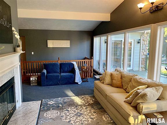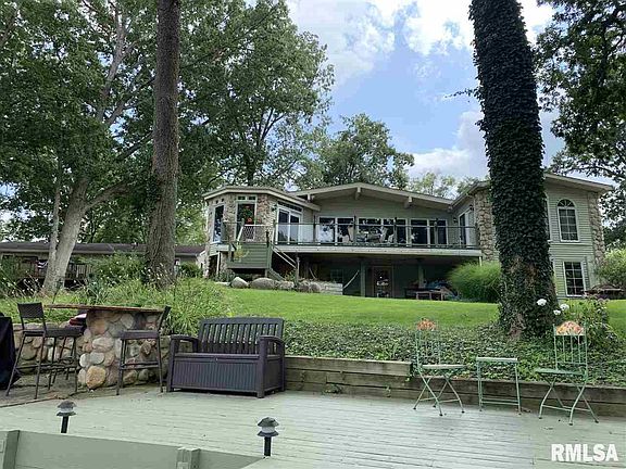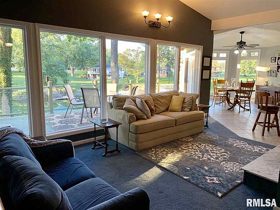 Stunning Lake Petersburg 3 bed/ 3 ba Ranch w/walkout on deep bay ! Home offers lake views out almost every window, multiple entertaining areas inside & out, possible in law quarters or 4th bedroom in lower level, vaulted ceilings & open floor plan! Walk into Liv Rm w/a wall of windows focused on the lake, gas FP & opens to Kit/Din allowing u to gather with your family year round! Kit has great counter top space, bkfst bar, built in hutch & room to cook! Din Rm is surrounded in windows, has heated tile flrs and opens to upper patio for relaxing! HUGE Master opens to upper deck and offers walk in closet, full bath w/jet tub! Lower level space is filled w Family Rm & Rec Area Extravaganza!! Space has a laundry room, storage and whole other area for another bedroom, in law quarters, hobby room...you choose! Amazing outdoor space too~ dock, deck, built in bar & beach at the water! Lush landscaping surrounds the home and adds to the privacy! Gotta See!!