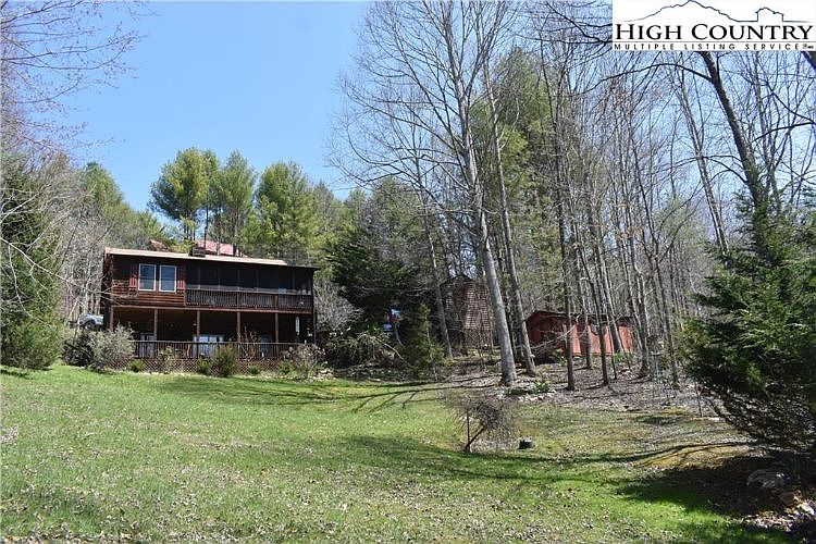 Charming 3-bedroom, 2 bath, tucked away, mountain cabin overlooking views of the historic North Fork of the New River. The main level includes a living room with a wood stove, kitchen, dining, 2 bedrooms and one bath. Off the living room is a lovely screened-in porch great for entertaining family and friends. Plenty of Pella windows that bring in natural light. The downstairs is finished and includes two rooms, one used as an office and craft area; the other a family room with glass sliding doors leading out to the lower deck area. A bedroom and bathroom are available for extra guests, including a laundry room with plenty of storage. Outside are two storage buildings. The grounds are filled with perennials and two fish ponds. Paved driveway with plenty of parking. Location of the home is a bit secluded and has an additional wooded lot.