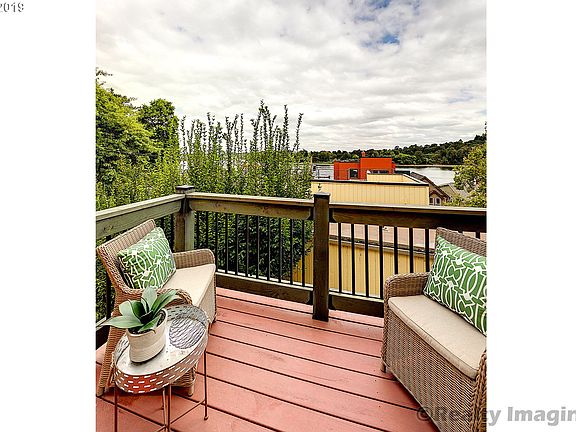 John's Landing living with expansive 25x21 rooftop deck for relaxing & entertaining with 360 view of river, Mt Hood & West Hills. 1 block to river walk, bike path & Willamette Park. Floor plan: Great Room, 2 bedrooms, 2 baths, 2 fireplaces, & 2 balconies. Abundant natural light. Numerous green features, energy efficient construction, honed granite, renewable woods in floor, ceiling & cabinetry. Travertine baths. Separate ground floor guest suite: LR/BR/BA,laundry perfect for office or in-laws.