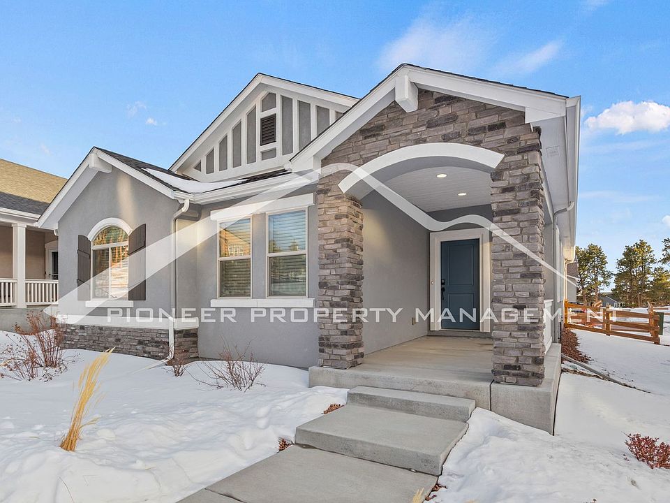Imagine living in a serene forest setting, where majestic pine trees and breathtaking mountain views create a tranquil backdrop. Nestled within the exclusive Sanctuary Pointe community, this stunning 3 bedroom, 2 bath newer-build home offers a blend of modern elegance and peaceful comfort. Step inside to discover a thoughtfully designed open floor plan, accentuated by luxury vinyl plank flooring and tall ceilingsall on a convenient single level. The bright, open kitchen features granite countertops, shaker cabinets, and stainless steel appliances, making it a perfect space for both cooking and entertaining. Outside, enjoy low-maintenance living with a beautifully xeriscaped back patio, ideal for afternoon relaxation or summer grilling. The spacious primary bedroom, tucked away in a private corner of the home, offers an oversized closet and a luxurious en-suite bathroom. Two additional bedrooms, each with custom-built closets, and a second full bathroom provide ample space for family or guests. Year-round comfort and convenience are at your fingertips with 2 car garage, central AC, a washer/dryer, and an automated irrigation drip system. Sanctuary Pointe is a meticulously maintained community, with lush green spaces and walking paths right outside your front door. Located just minutes from Fox Run Regional Parkfeaturing miles of trails, open fields, and tranquil pondsit's perfect for outdoor enthusiasts. The home is also close to shopping, dining, highly rated D-38 schools, and major routes for easy commutes to Colorado Springs, Castle Rock, and Denver. The community hosts local events throughout the year, fostering a sense of connection and belonging. Don't miss your opportunity to experience this peaceful retreatmake this home yours today! HOW TO SCHEDULE A TOUR *The Zillow 'Request a Tour' and 'Request to apply' option are not currently available. *Please visit RentMeCoSprings [dot] com and click 'Available Properties' -OR- Google Search: Pioneer Property Management Colorado Springs and click 'Available Properties' APPLICATION DETAILS *Property Tour Required with at least 48hrs notice. *Resident is responsible for gas, electric, water and wastewater *One (1) Trash Bin is provided within the rental rate *Application fee is $65.00 per person (see application Terms of Agreement for details). The cost of the application fee is based on average expenses of what Pioneer PM incurs - Per CO HB19-1106. *If approved, a lease preparation and administration fee of 15% of one month's gross rent is required. *Refundable security deposit equal to 85% of one month's gross rent is required. TENANT QUALIFICATION CRITERIA *Total gross income of at least 2X monthly charges for an individual applicant. For applications with more than one unrelated applicant over the age of 18, each applicant must qualify separately with an income of at least 1.5X monthly charges per applicant. You will need to submit proof of income at the time of application submission. *670+ credit score is required. *Applicants will be considered with credit scores below 670 with an added reoccurring Marginal Credit Score Fee of 1/12th of monthly rent. Approved applicants can resubmit credit information if credit score is improved to 670+. *Co-Signers will not be considered to fulfill any qualification requirement. *Complete criteria is available at: RentMeDenver [dot] com *Pets considered with pet fees. No Large or Dangerous Dogs. No more than 2 pets total will be considered. *Pet fee: $250 One Time Fee + $35/mth per pet *Other terms, fees, and conditions may apply BROKERAGE SERVICES *In addition to rent, residents will be charged a brokerage services charge of $25/mth. INSURANCE REQUIREMENTS *Liability to Landlord Insurance (LLI) is required by all tenants. We have options available starting at $10.50/mth. *Renters Insurance is not required but is highly recommended. Many renters insurance policies include LLI coverage. Check with your provider prior to signing up. All information is deemed reliable but not guaranteed and is subject to change. If you have additional questions you can contact us at: info@rentmeCOSprings [dot] com Pioneer Property Management RentMeCoSprings [dot] com