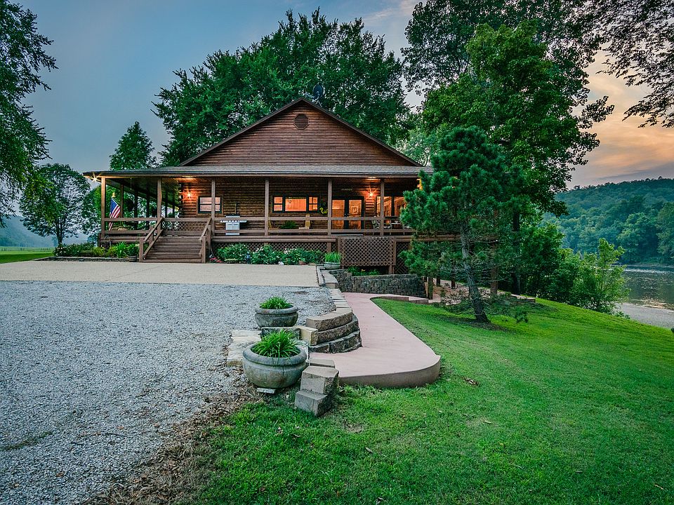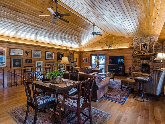 Warm Elegance greets at this White River Retreat. Custom log home has 4 BR & 3 & 1/2 BA, 3600 S/F, 3 car Det. Shop, 260+ feet of river frontage, wrap-around covered deck. Chef's kitchen with island & bar, granite tops, stainless appliances, dual ovens & under cabinet lighting. Floor to ceiling glass on both levels. Open living room w/ wood burning F/P. Master suite w/ walk-in shower, jacuzzi tub, dual vanity & walk-in closet. Lower master suite w/ walk-in shower & walk-in closet also. Full bath in shop!