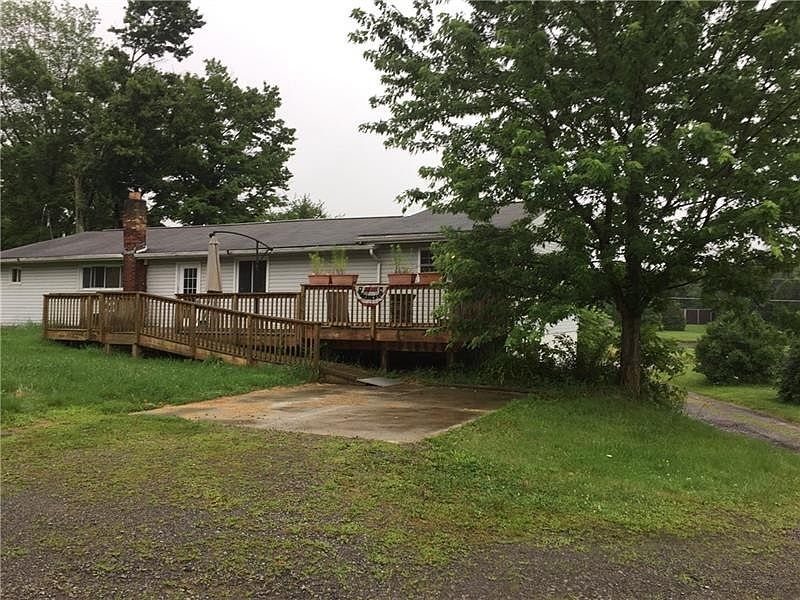 DBV 2867 pg 0893 Recently renovated kitchen,Wall oven is conventional not convection oven, nice size rooms, large rear deck, handicap accessible, great location on quiet road, Needs some TLC but has much potential. Two huge bathrooms, small powder room with 2 way access. Detached garage was former truck garage, needs repairs but framework appears to be sound. Lot is 1.68 acres. Large home in a great location. Slippery Rock School District.