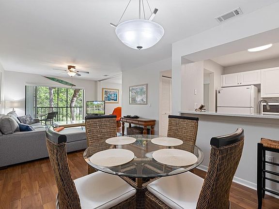 This beautifully maintained and thoughtfully upgraded turnkey-furnished condo offers the perfect blend of modern style and coastal comfort. The open kitchen features sleek quartz countertops, matching white appliances, and a custom backsplash that creates a bright, inviting space to cook and gather. The primary suite provides a relaxing private retreat with a walk-in closet, an updated en-suite bathroom with a modern walk-in shower and vanity, and direct access to the lanai overlooking a peaceful pond and the Phase IV pool. The second bedroom is a flexible space enhanced by a stylish pocket-door design, allowing it to open or close seamlessly to fit your needs. The home’s interior reflects the meticulous care it has received over the years. Beautiful laminate flooring extends through the main living areas and transitions smoothly into ceramic tile in the primary suite, lanais, kitchen, and bathrooms. Located in the highly desirable Bird Bay Village, residents enjoy a wealth of resort-style amenities including a heated Junior Olympic pool, an additional Phase pool, tennis and pickleball courts, a fitness center, shuffleboard, and an active clubhouse. The HOA covers water, sewer, trash, basic cable, pest control, exterior insurance, and grounds maintenance, offering true peace of mind. Just minutes from world-class beaches, great shopping and dining, and the scenic Legacy Trail, this home is perfectly positioned for those who enjoy coastal living and the Florida lifestyle. Whether you're seeking a seasonal escape, a full-time residence, or a strong investment property, this condo is an opportunity you won’t want to miss. Paradise Awaits!