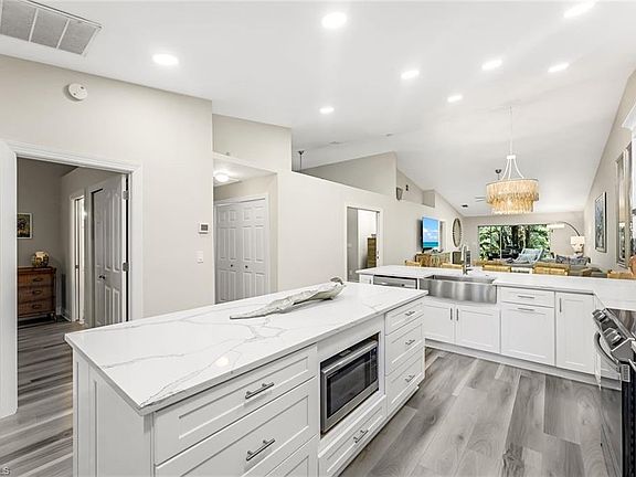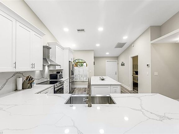 Welcome to your dream home in the heart of Naples, Florida. This beautifully renovated residence is located in a charming waterfront community and offers the perfect blend of luxury and comfort. Enjoy peace of mind with new PEX plumbing, updated electric switches, recessed lighting, a new water heater, fresh baseboards, doors, fixtures, and a newer roof. The modern kitchen features white cabinetry, quartz countertops, stainless steel appliances, and a designer vent hood. Both bathrooms have been upgraded with frameless glass showers, new toilets, and stylish flooring. A new washer and dryer complete this move-in-ready home. The Villas at Wiggins Bay offer a community pool and bathhouse with a serene pond view. Optional membership at the Tarpon Cove Yacht & Racquet Club provides beach boat shuttles, a resort-style pool with a tiki bar, tennis courts, a fitness center, and more. Experience the best of Naples living in this stunning home.