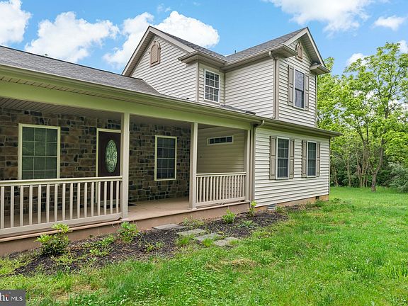 Check out this custom-built home on 1.84 private acres in Bunker Hill. This home was completely remodeled in 2021 and features many upgrades including new flooring throughout, quartz countertops, updated cabinets, newer appliances, a beautiful electric fireplace, and a deck off the main level. The primary bedroom, located on the first floor, features a walk-in closet and an oversized spa-like bathroom with a shower, soaking tub, and two separate sinks. Upstairs, you'll find 2 bedrooms, each with their own private, full bath. Additionally, there is an attached apartment or in-law suite that has a separate entrance and features a bedroom with its own living room, kitchen, full bath, and laundry hook-up. The long driveway and attached 2-car garage provide ample parking space, while the large yard is mostly level and surrounded by trees for privacy. Just off Route 11 and close to I-81, this home offers close proximity to Winchester, VA and other commuter routes.