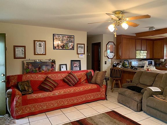 This is a sweet little home with a huge yard and several fruit and nut trees including Pistachios! Pull up a stool to the breakfast bar and visit with the cook, or swivel around and watch TV! The bedrooms are comfortable and medium sized with nice closets. There is plenty of room for RV's extra cars, boats or what have you. It's a corner lot, so you can enter the extra large rear yard from the side street!