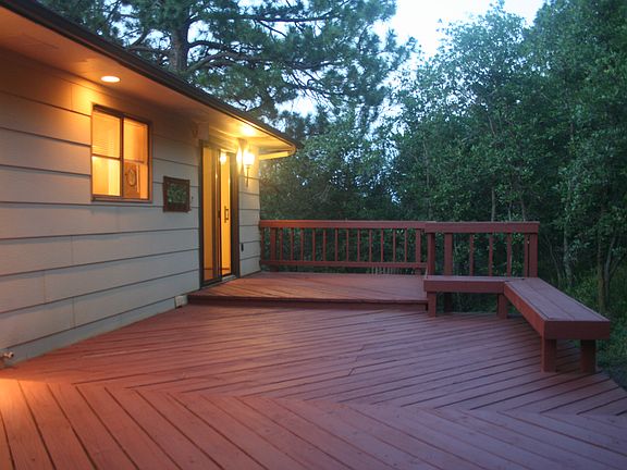 Updated Rockrimmon home with a great room and 750 sq ft private deck. Large entertainment room downstairs with wood burning fireplace.