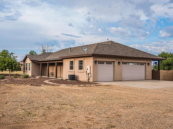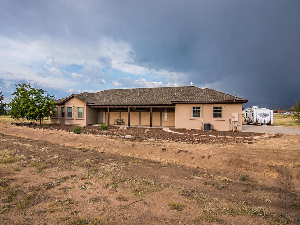 Semi-custom home 2144sqft, 3 bedrooms, 2.5 baths, 3 car garage on 3.75 acres. This home is located on a cul de sac with beautiful views of Mingus Mountain. Home has a huge open concept great room perfect for entertaining with tongue & groove ceilings and 2 sided freestanding gas fireplace. Large kitchen with knotty alder cabinets and stainless steel appliances. There is 18" tile throughout except bedrooms, travertine in Master and Guest Bathrooms, all wood interior doors, and ceiling fans in every room. Laundry/mud room is equipped with a utility sink and cabinets. Extensive back yard has grass, mature trees, firepit and privacy block wall with double gate. Covered patios front and back, with extended concrete on back patio and driveway. Last well test was at 30gpm.