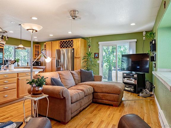 Welcome to this lovely home ideally located on just less than 3 acres of peace and tranquility and a Park-like setting. Boasting extensive wood flooring, this home features a wonderful and open floor plan offering 4 bedrooms, 3 bathrooms and great storage. The spacious main level highlights the Living Room with large picture windows, desk or bar area and a Country kitchen complete with a large eating island, separate breakfast area and access to the oversize deck. Upstairs offers a nicely appointed Owner's Retreat complete with an attached full bath, 2 large secondary bedrooms (one with new carpet), full bath and linen storage. Open from the Living Room and Kitchen is the spacious Family Room, perfectly located for the whole family, features a wood burning fireplace and provides easy walk-out access to the oversize and custom river rock epoxied covered patio (7/2018). Additionally, there is a powder bath and laundry area. The finished basement provides a second family room, 4th non-conforming bedroom and a separate storage room along with extra wall storage. The inviting outdoor living is at its best and showcases an outdoor firepit with a flagstone patio, 2 stall barn, loafing shed with tack room, good pasture land, exceptional Pines, beautiful meadow and mountain views and a separate and large shed close to the home for all those extras. Enjoy the bonus of this exceptional location in that you are just across the street from the Park. This home offers so much for anyone along with great curb appeal from the extended driveway entry that leads you up to this home. This is true country living but close to all the amenities of the city. ADDITIONAL IMPROVEMENTS INCLUDE: New garage door (2020). Additional river rock epoxy installed on front porch and walkway 7/2018. Exterior painted 8/2017. Insulation added to attic in 2012 increasing R value to 49. New sliding doors (2) installed on main floor (living room), plus 2 new windows on main November 2016.