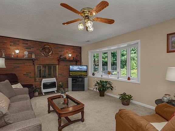 Living rm has a large bay window for lots of natural light, decorative FP and gas heater.