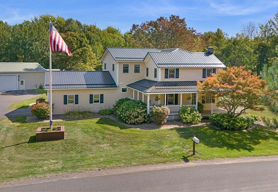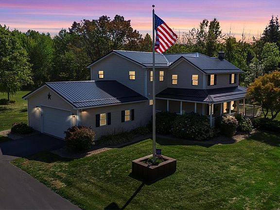 Nestled in the charming town of Williamson, NY, this stunning property offers the perfect blend of comfort, style, and functionality. Situated on a sprawling 2-acre lot within the desirable Sodus school district, this home boasts numerous upgrades and features designed for modern living. As you approach, you'll be greeted by a beautifully landscaped yard with paver sidewalks, a large flagpole, and a welcoming wrap-around front porch. The brand-new metal roof, installed in 2024 with a 50-year warranty, ensures years of worry-free protection along with the connivence of an instant hot water heater. Enjoy the outdoors with a covered pergola and stamped concrete patio, perfect for entertaining or relaxing in privacy. Step inside this beautifully updated home to find a seamless blend of modern amenities and thoughtful design. The laundry/entry room welcomes you with tile floor, complete with a washer and dryer. The heart of the home is the custom-remodeled kitchen (2018), featuring quartz countertops, a stylish tile backsplash, and a unique Wayne’s coating ceiling. Craftmade soft-close cabinets, including a spice cabinet and built-in garbage, offer ample storage. Two sinks, one is a double and the other a single on a large island, provide ultimate functionality. A large walk-in pantry and a completely remodeled half bathroom (2018) offer additional convenience. The living room featuring new luxury vinyl flooring and a built-in gas fireplace (2018), perfect for cozy evenings. Upstairs, the oversized primary suite is a true retreat, complete with a full bath featuring modern shower. A spacious walk-in closet and a private balcony enhance the suite's appeal. Attached to the house is a 2-car garage with epoxy flooring, fully insulated and drywalled, and equipped with heat. The detached 40x44 insulated pole barn is a standout feature, boasting a concrete floor, water spigot, and bays on the front and back for easy drive-through access. Inside, you'll find two storage rooms, perfect for potential office space. Additionally, a 22x24 uninsulated pole barn with a concrete floor provides even more storage. Delayed Negotiations till September 29th at 2 P.M.