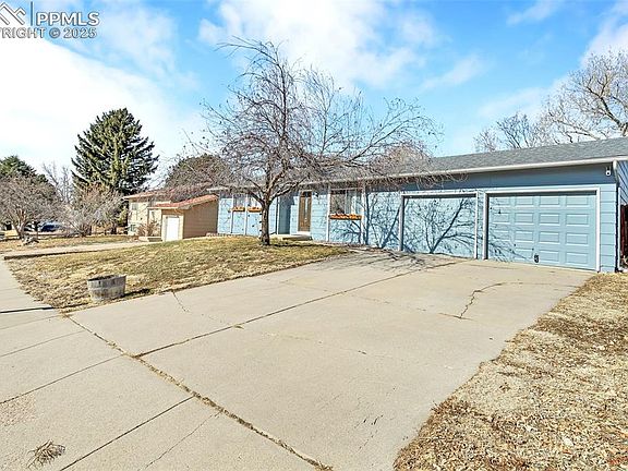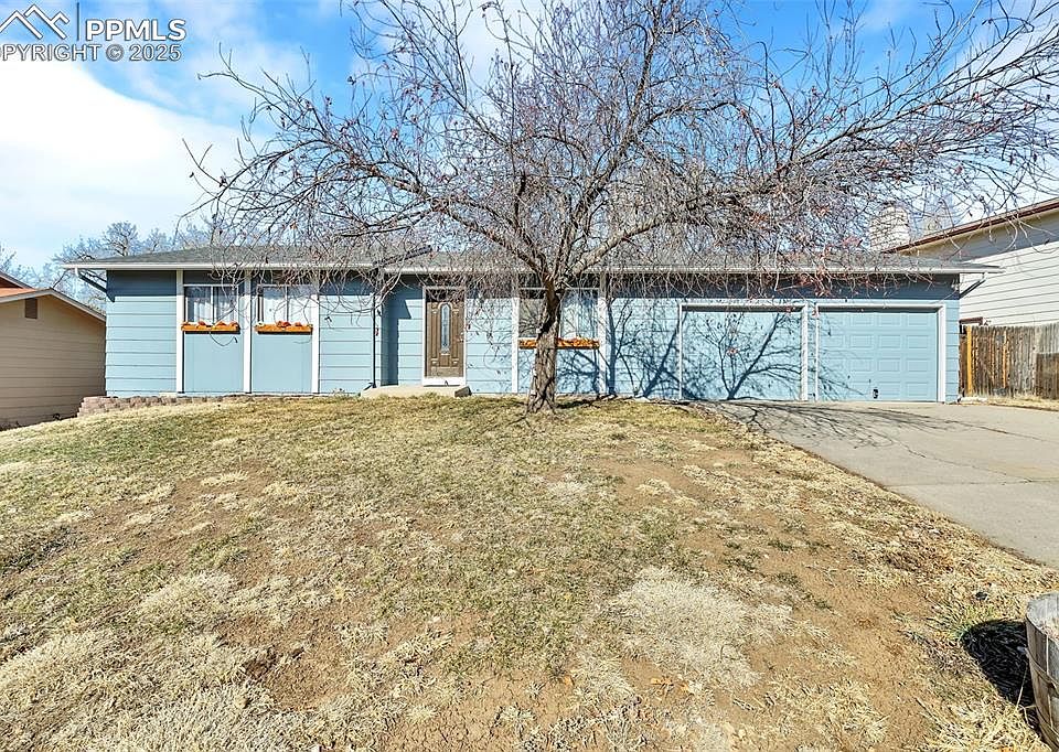 Make this home yours! A true gem with its charming curb appeal, this rancher boasts 3 bedrooms and 1 bath. Upon entering you are met with an abundance of natural lighting, vaulted ceilings, and laminate wood flooring throughout the living room, kitchen, and dining area. The kitchen has charming blue cabinets, stylish backsplash, an eat in dining area, and a walkout to enjoy your morning coffee in the huge backyard. The primary suite is large and boasts a walk-in closet. Down the hall, there are 2 nicely sized, carpeted, guest bedrooms and a full bath. Enjoy the huge backyard that feels like the perfect oasis; fully fenced for privacy, and boasts a storage shed. The home also has a 2-car attached garage that has an ample amount of space to park your vehicles and extra storage. Just minutes from Fort Carson, you'll enjoy easy access to shopping, dining, and recreation. Come see this charming home and fall in love.