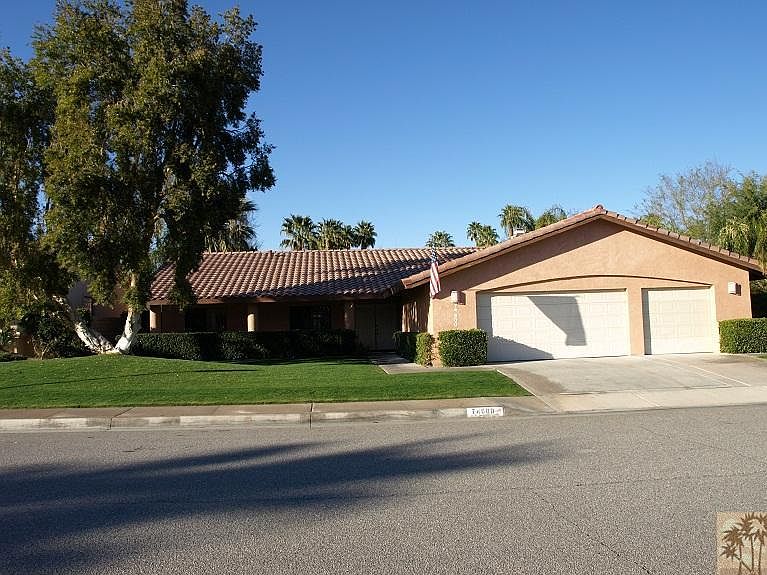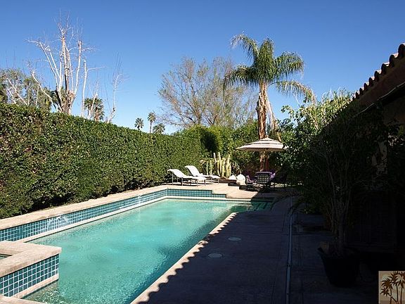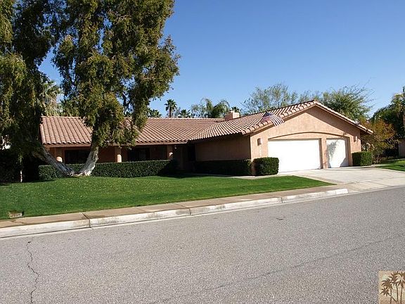 NOW REDUCED!!! This lovely south facing 3br 2 1/2 ba home has no HOA fees and is located on a quiet cul-de-sac convenient to everything and has an exceptional floorplan. Through the double door entry is a lg. living room w/vaulted ceiling overlooking the pool/spa area. The family room (game room) has a fireplace and wet bar w/pass thru to living room. Kitchen is a chefs dream with double oven, center island, spacious and plenty of cupboard space and includes lg. breakfast area surrounded by bay windows. Lg. open master has vaulted ceiling, 2 walk-in closets, double sinks, sep. shower & soaking tub and slider leading to patio/pool/spa. Guest bath also has double sink vanity and shower/tub combination. The private backyard has mature landscaping, fruit trees, cactus garden, palm trees and mountain views. Pool/spa both have LED colored lighting. Furnished optional.
