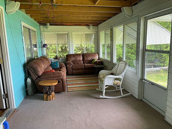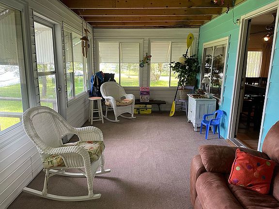 Very well cared for vacation or year round home, new roof on home 2017, new roof on garage and shed July 2021, as well as new shed floor. Bedrooms both nice size, living/kitchen are open and home appears much larger than townships square footage states. Large sunroom on lake side of home to sit and watch the sunsets over the lake. One side of property completely tree lined for privacy and an additional 50' of frontage with another garage is also available for purchase at this time for a total of 106' Feet of beautiful water frontage. Be the envy of the neighborhood to have an extra lot with additional garage.