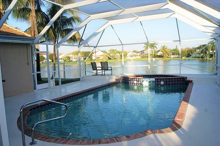 Enjoy Florida in gorgeous 4 bedroom, 2 bath, 2 car garage home with pool and expansive lake view in desirable Lake Charleston. New A/C Unit. RENT INCLUDES INTERNET, CABLE TV/ HBO & LAWN SERVICE! This house features an elegant living and dining rooms, open kitchen with granite countertops, white wood cabinets, stainless steal appliances, summer kitchen, screen patio, spotlights outside, Accordion Shutters. No carpets!Community offers 2 swimming pools, tennis courts, basketball court, playground...A rated schools! c/oThe Keyes Company