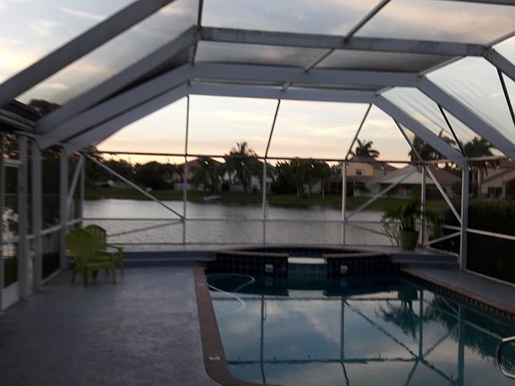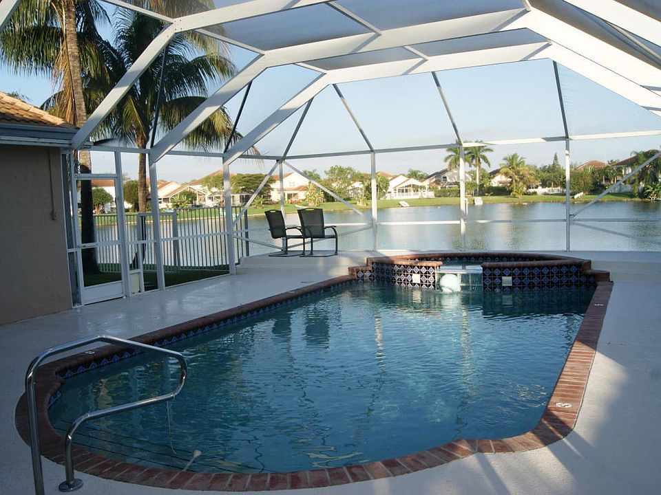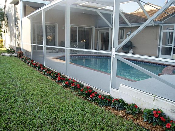 Enjoy Florida in gorgeous 4 bedroom, 2 bath, 2 car garage home with pool and expansive lake view in desirable Lake Charleston. This house features an elegant living and dining rooms, open kitchen with granite countertops, white wood cabinets, stainless steel appliances, summer kitchen, new patio screens enclosure, spotlights outside, Accordion Shutters. 2017 A/C Unit, 2006 Roof. No carpets! Low HOA fee includes Internet Cable TV w/ HBO... Lawn is watered from lake so it saves you on water bill a lot. Community offers 2 swimming pools, tennis courts, basketball court, playground...A- rated schools!