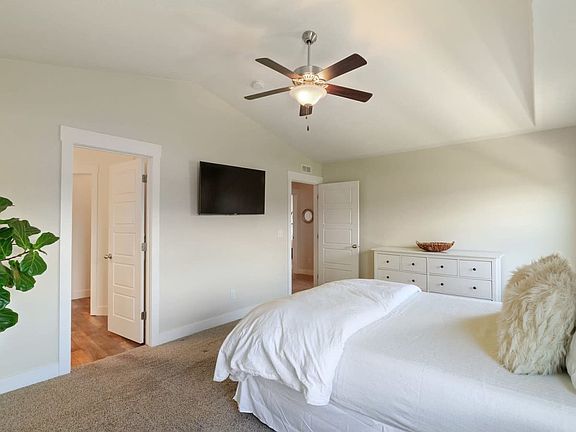 Beautiful two-story open floorplan located in a quiet and friendly neighborhood on a private road in Eagle Mountain, UT. Large Mudroom located by the garage entrance with half bath on main floor. Laminate flooring thoughout main floor. Beautiful kitchen with staggered white cabinets, quartz countertops, updated light fixtures, tile backsplash, and a large walk in pantry. Large and spacious master bedroom with vaulted cielings and fan, double sink vanity in master bathroom with walk in closet.