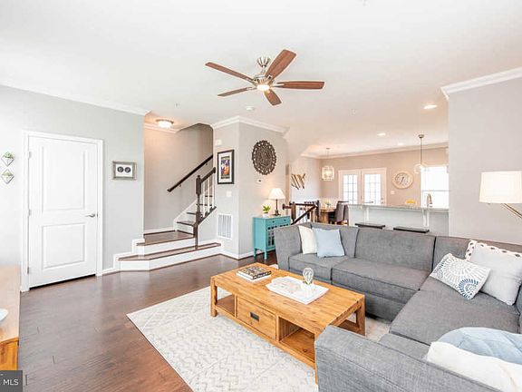 Prepare to fall in love with this remarkable end unit garage townhome featuring a modern open floor plan with stylish finishes and light filled living spaces! Main level features gorgeous engineered hardwood floors and hosts a spacious eat-in kitchen featuring on-trend lighting, sleek stainless steel appliances, granite counters, island, timeless white cabinets and sunny dining area with french doors to the maintenance free deck. Living room off the kitchen features streaming natural light and plenty of space to gather and entertain. Upper level hosts 3 comfy bedrooms and 2 full bathrooms including the owner's suite with walk-in closet and full bathroom. Lower level features an added half bathroom and recreation room with walk-out access to the backyard. Situated just across from the community playground and common area with walking path and located conveniently to commuter routes and everyday needs. Your search ends here!