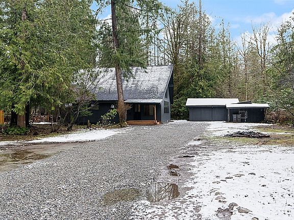 Nestled in a serene and secluded setting, this renovated chalet-style home radiates sophistication. Featuring vaulted ceilings, it offers two generously-sized master suites and two baths. The residence features new vinyl plank flooring throughout and a new kitchen with tile backsplash.Freshly painted inside and out, the residence comes complete with a new deck, providing a perfect retreat to enjoy the surrounding nature. Additionally, a detached one-car garage, RV parking, and outbuildings offer abundant storage. This property seamlessly combines contemporary elegance with natural charm creating an idyllic retreat for refined living.