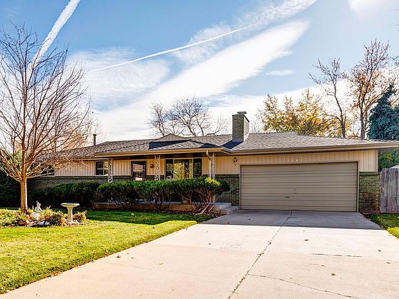 Welcome to this gorgeous ranch home in Littleton! Beautiful brick accents, a covered front porch provide the home with great curb appeal. The home offers a wonderful layout that opens to an inviting living room. The separate dining room leads to the eat-in kitchen boasting lovely wood laminate floors, a center island with breakfast bar, and is flooded with natural light from the southern facing bay windows and sliding doors. The main floor is host to three bedrooms including the spacious master suite with attached bath. Downstairs, the full finished basement expands the living space with a large rec room, family room with a cozy fireplace, additional bedroom and a bar that is excellent for entertaining. Relax in the amazing backyard from the stamped concrete patio. The large yard showcases perennial gardens, mature trees and landscaping, and a convenient storage building. This home is in a great cul-de-sac location in a quiet neighborhood close to major shopping areas.