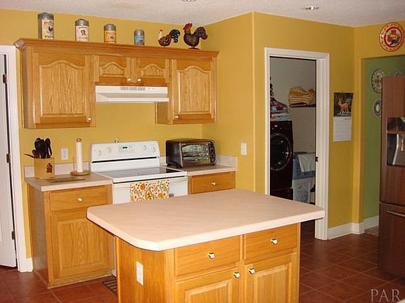 Beautifully maintained all brick one owner home located in Beulah that is close to Navy Federal Credit Union and Interstate 10. The sellers have taken pride of ownership and it shows from the tiled front and back porches, to the tiled floors in the living area, kitchen and bathrooms to the gorgeous hardwood flooring that was recently installed in all four bedrooms. This split bedroom floor plan features a formal dining room and office with French doors directly off the entry to the home. The foyer flows into the great room with cathedral ceiling, plant ledges and gas fireplace. The kitchen is spacious with a center island, numerous cabinets, glass top stove, dishwasher, disposal and pantry. There is also a breakfast nook that overlooks the covered patio and in ground pool. The master suite is huge. The bedroom has a trey ceiling and there are doors leading outside to the covered porch. The master bathroom has a dual vanity with many cabinets and drawers, a garden tub, separate shower with doors, two walk-in closets and a large walk-in linen closet for additional storage. Two of the additional bedrooms share a sizable hall bathroom. The largest additional bedroom has its own private bathroom that has been recently upgraded to include a new sink, faucet, shower head, vanity and mirror that includes storage. This bathroom has access to the backyard which will be great for entertaining outside around the pool and covered porch. The in ground pool boasts a new liner (2015 per seller) and a variable speed pool pump that is only a few years old. To keep your lawn looking nice there is also a sprinkler system on its own well. If you enjoy eating fruit, you can pick your own fresh plums, persimmons, apples, loquat and blueberries. All three bathrooms have newer American Standard toilets and linen closets, most of the light fixtures have been updated and all four bedrooms as well as the great room have ceiling fans. Call today to schedule your personal tour.