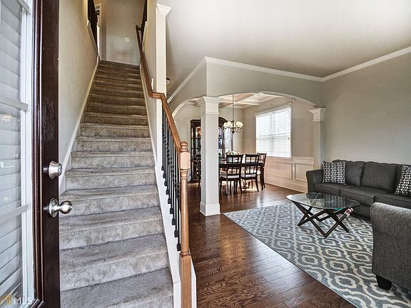 MUST SEE! Beautiful 2-story 5 bedroom/3.5 bath craftsman-style home with a brick accent, covered front porch, and a unfinished basement. This home's masterful design offers gorgeous hardwood flooring throughout the main level, a separate dining area, inviting great room, formal living room; and a open gourmet kitchen with granite countertops, tile backsplash and a large center island. The upstairs master bedroom is extremely spacious with an outside deck for morning coffee and relaxation. The master bath features its own luxury bath with a separate tub, tiled shower, and dual vanity. All secondary bedrooms comes with lots of room to move around and great storage space. Come see today! Only minutes from the interstate.